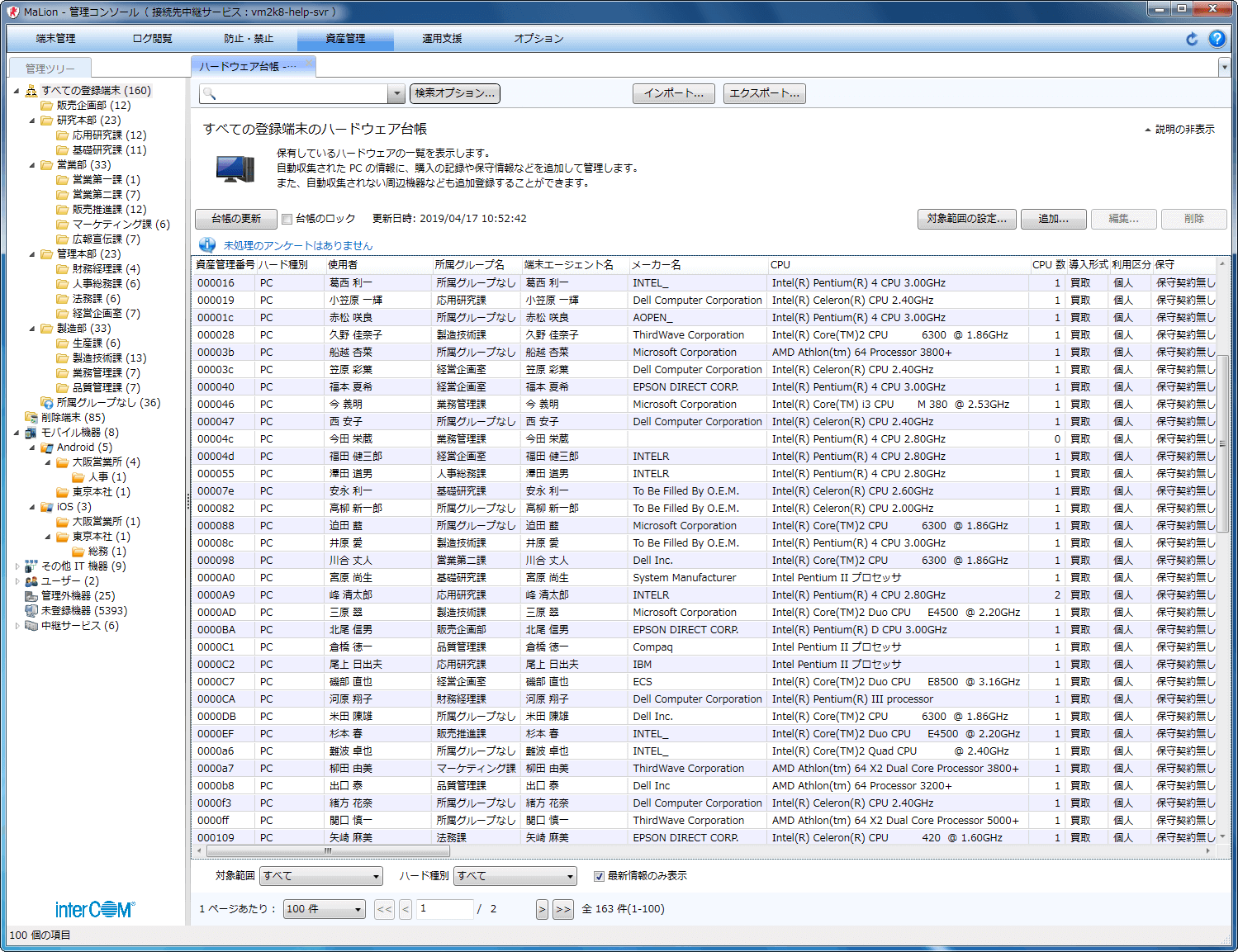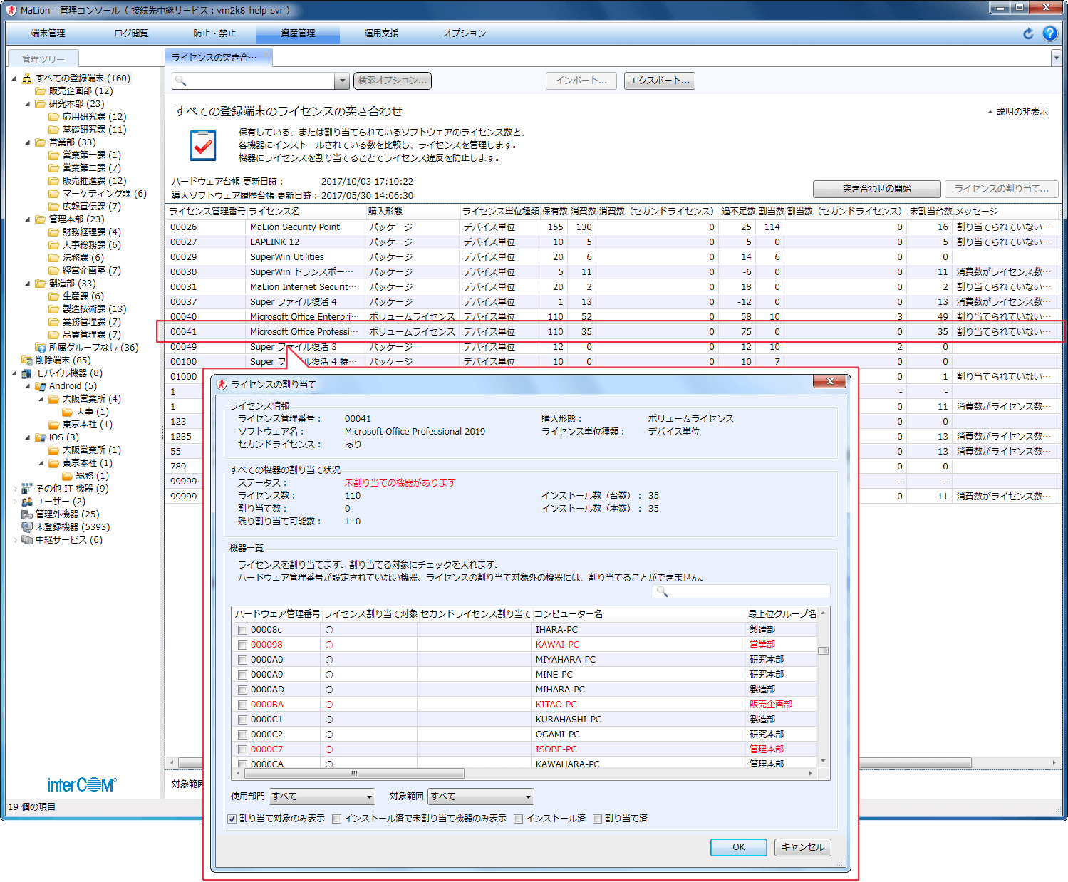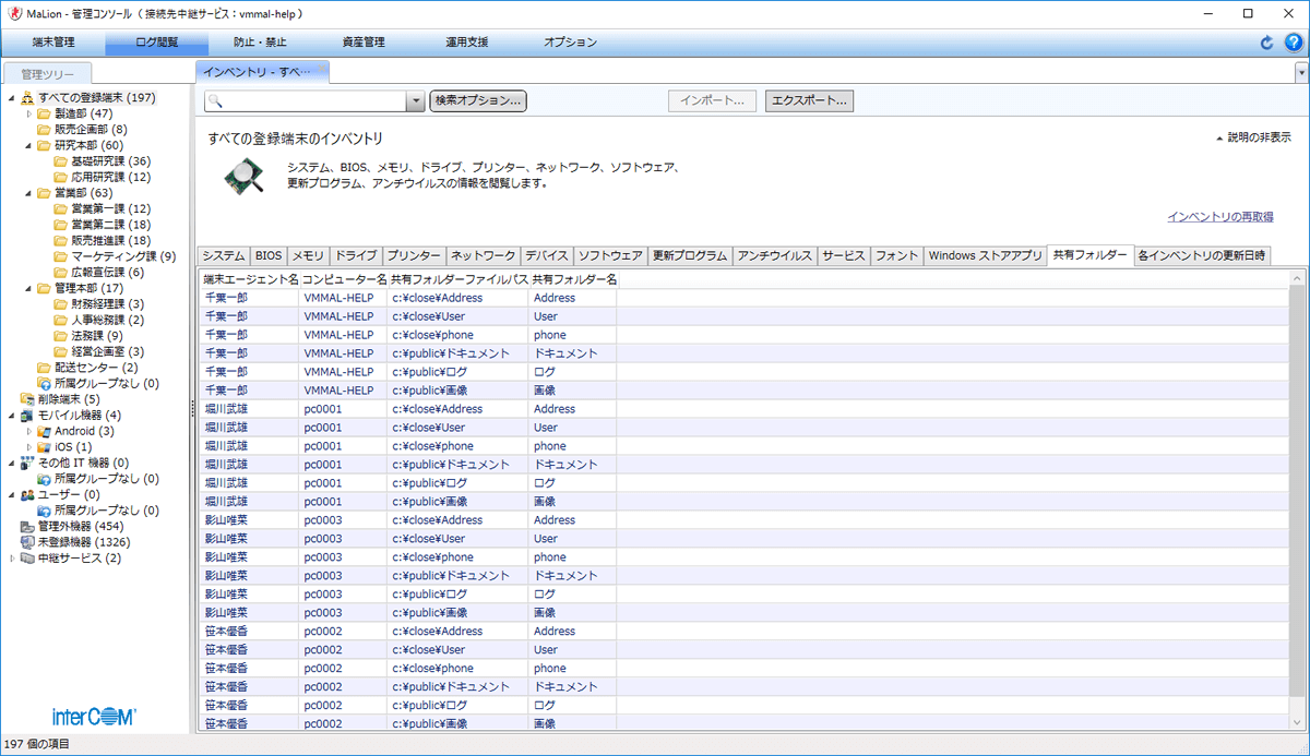 - 共有しているPCや従業員を一覧管理したい