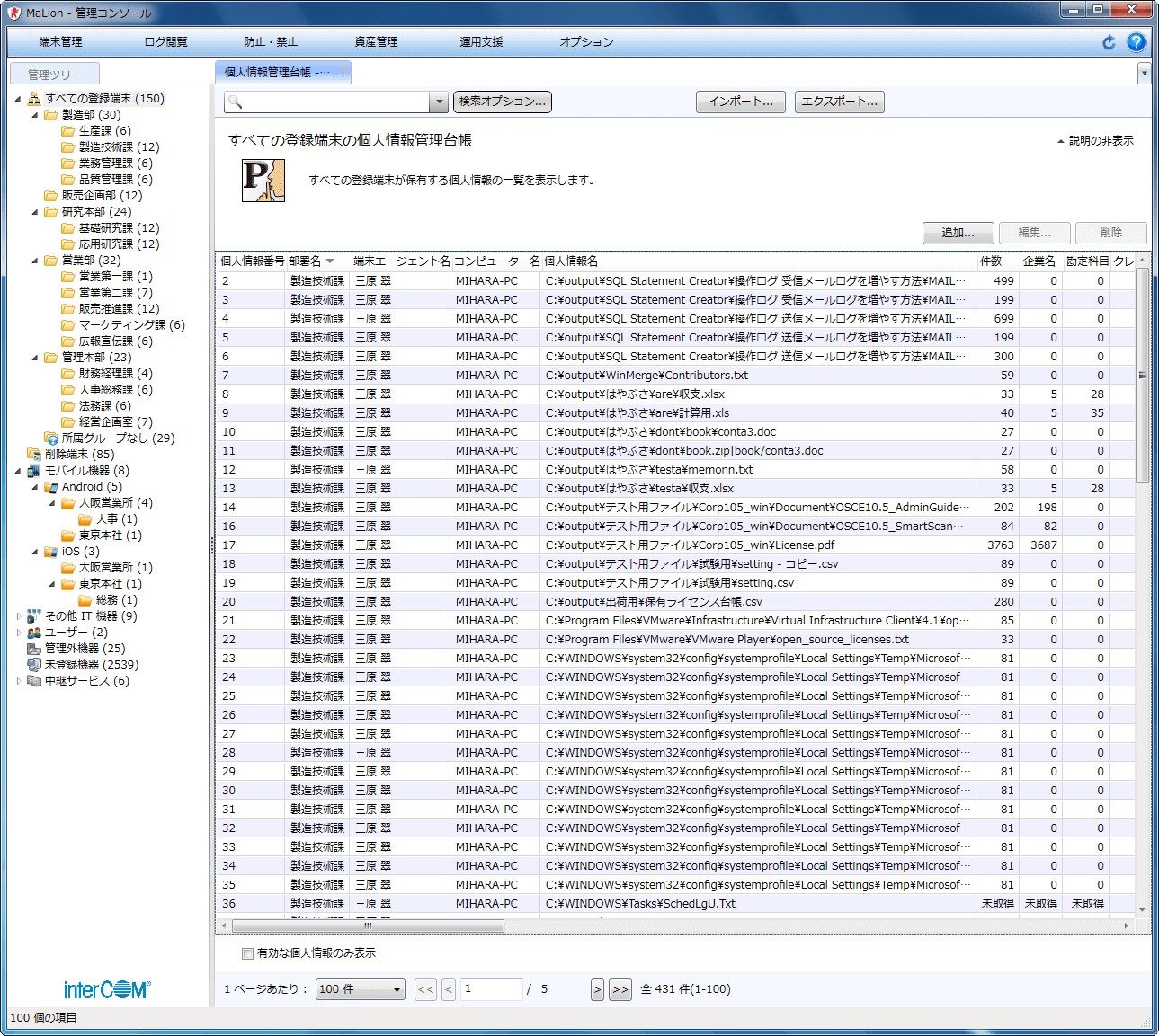 MaLion 個人情報検出・管理システム(P-Pointer File Security連携)