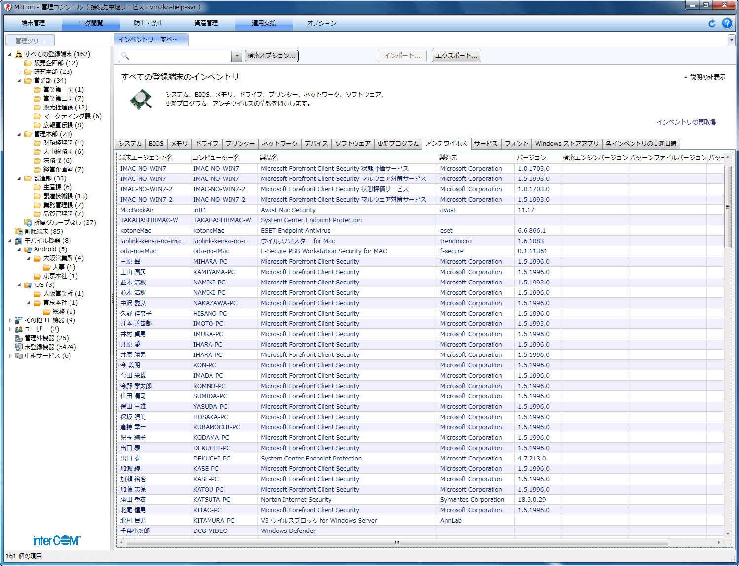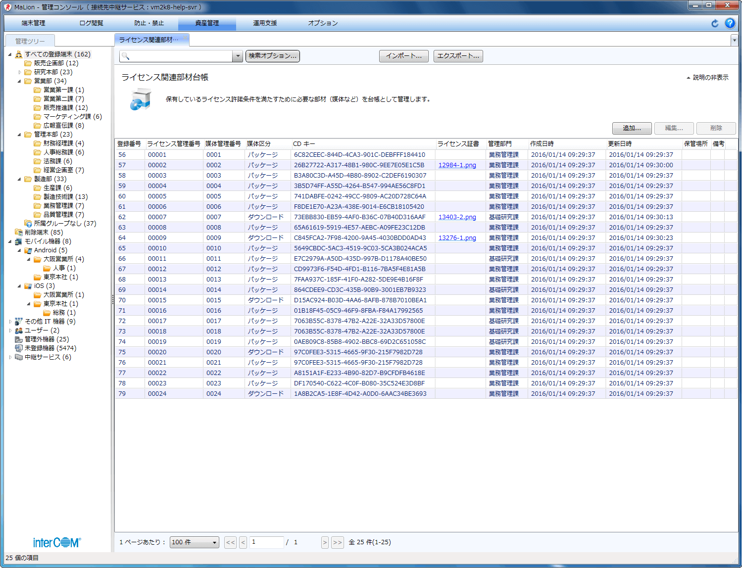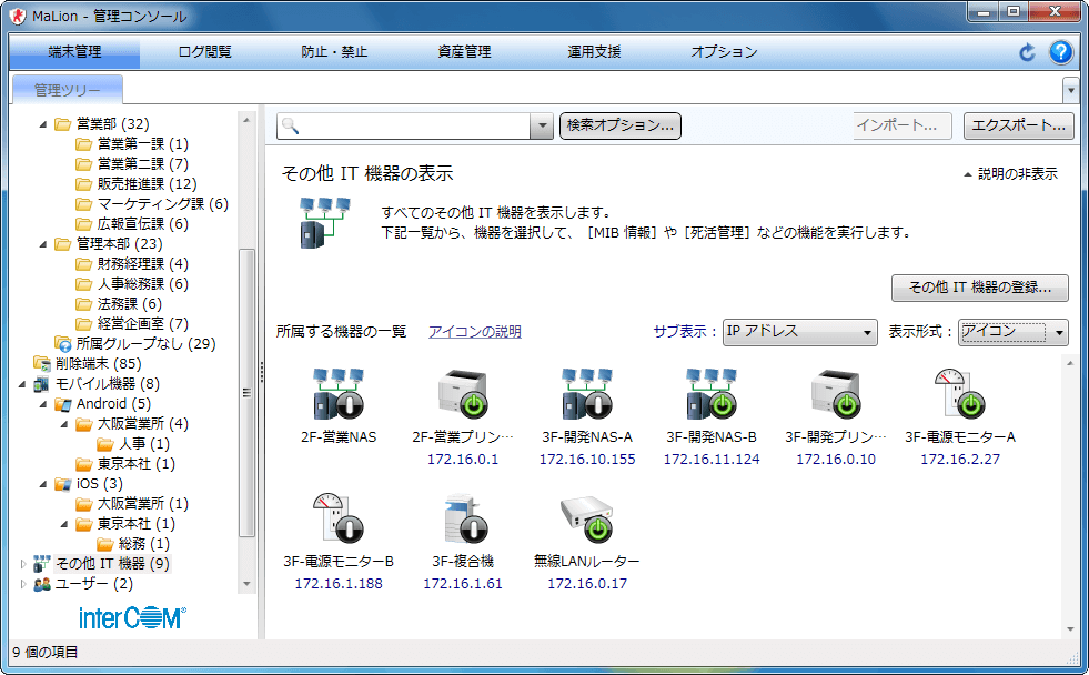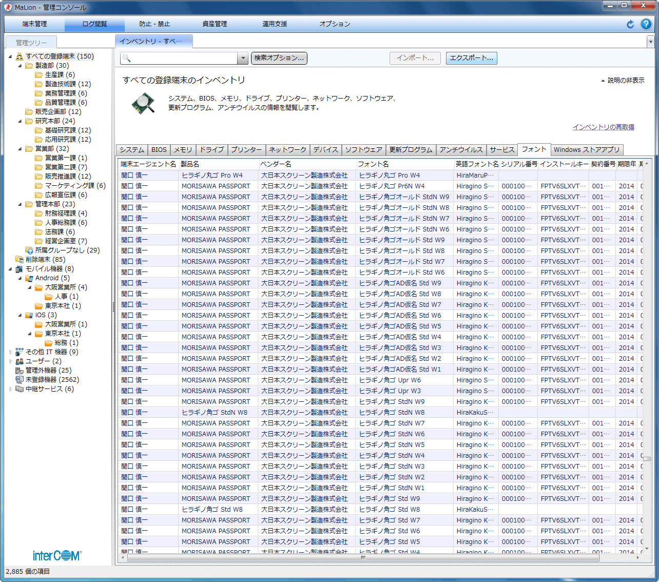 管理者は、従業員に配付したスマートフォンやタブレットのインベントリをMaLionに集約できます。