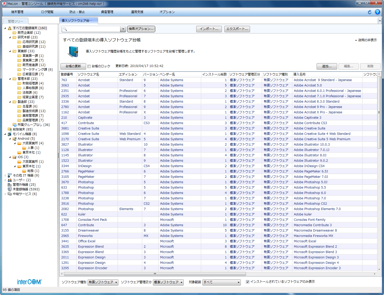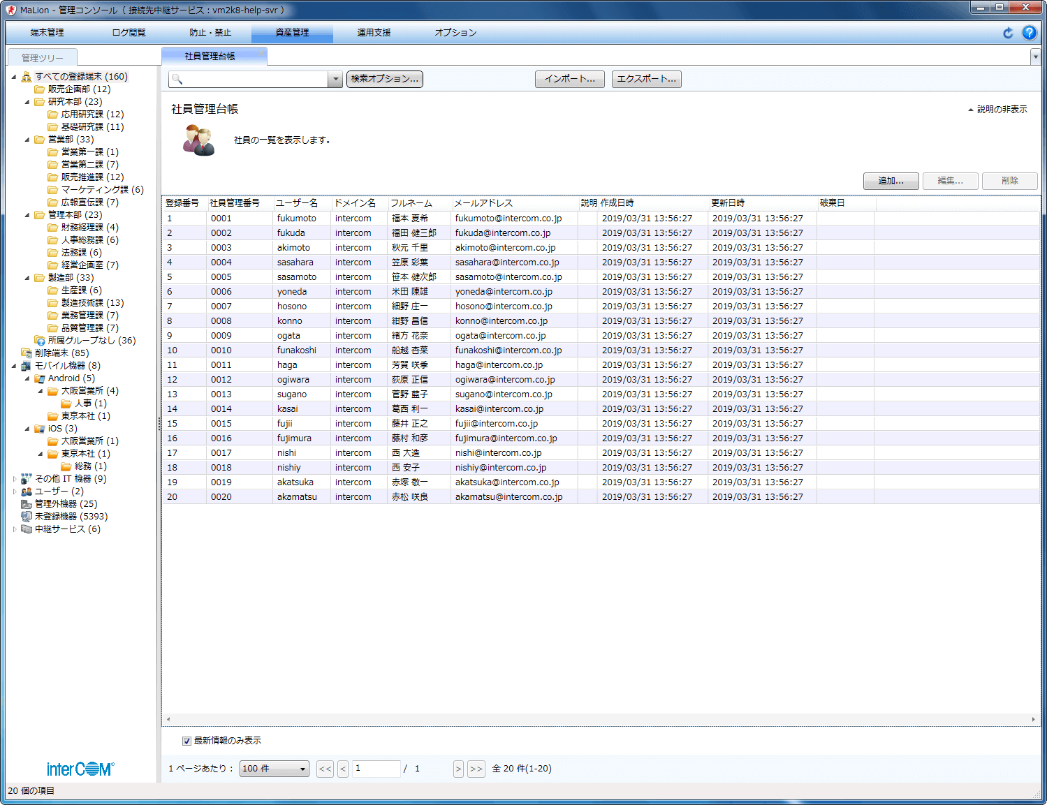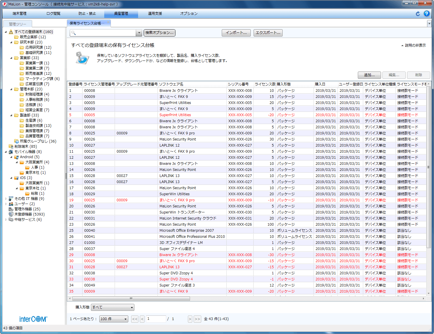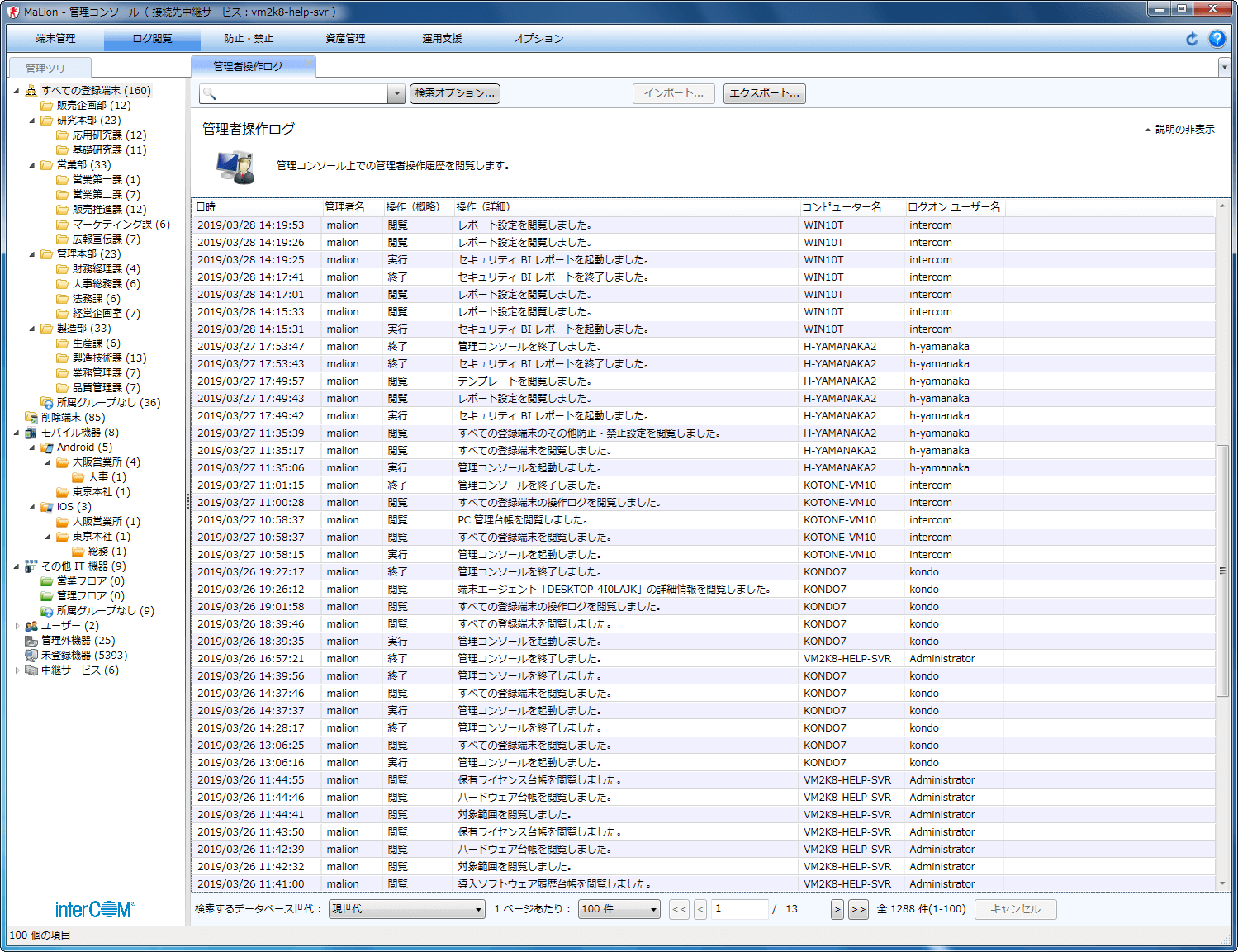 管理者は、従業員に配付したスマートフォンやタブレットのインベントリをMaLionに集約できます。