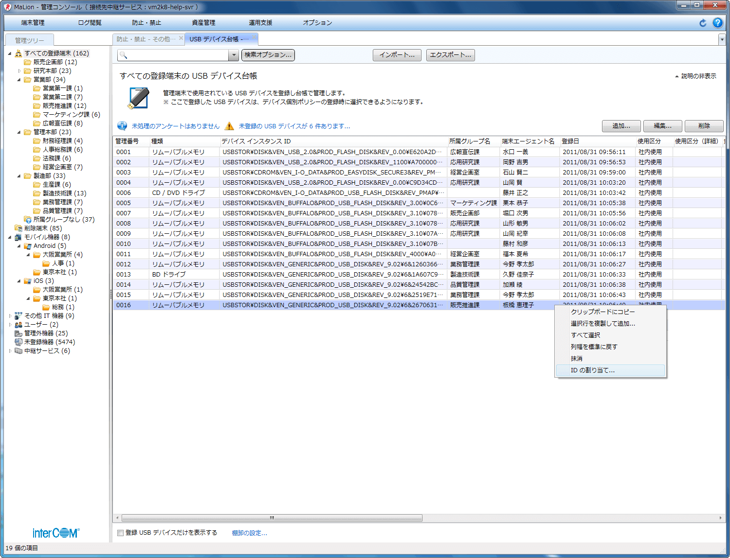 - テレワークで使用するUSBデバイスの台帳管理をしたい