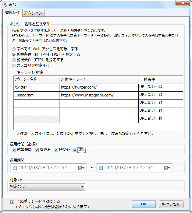- セキュリティポリシー設定