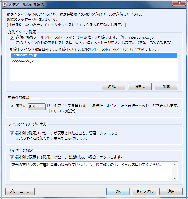 - うっかりメール送信抑止(送信メールの宛先確認)