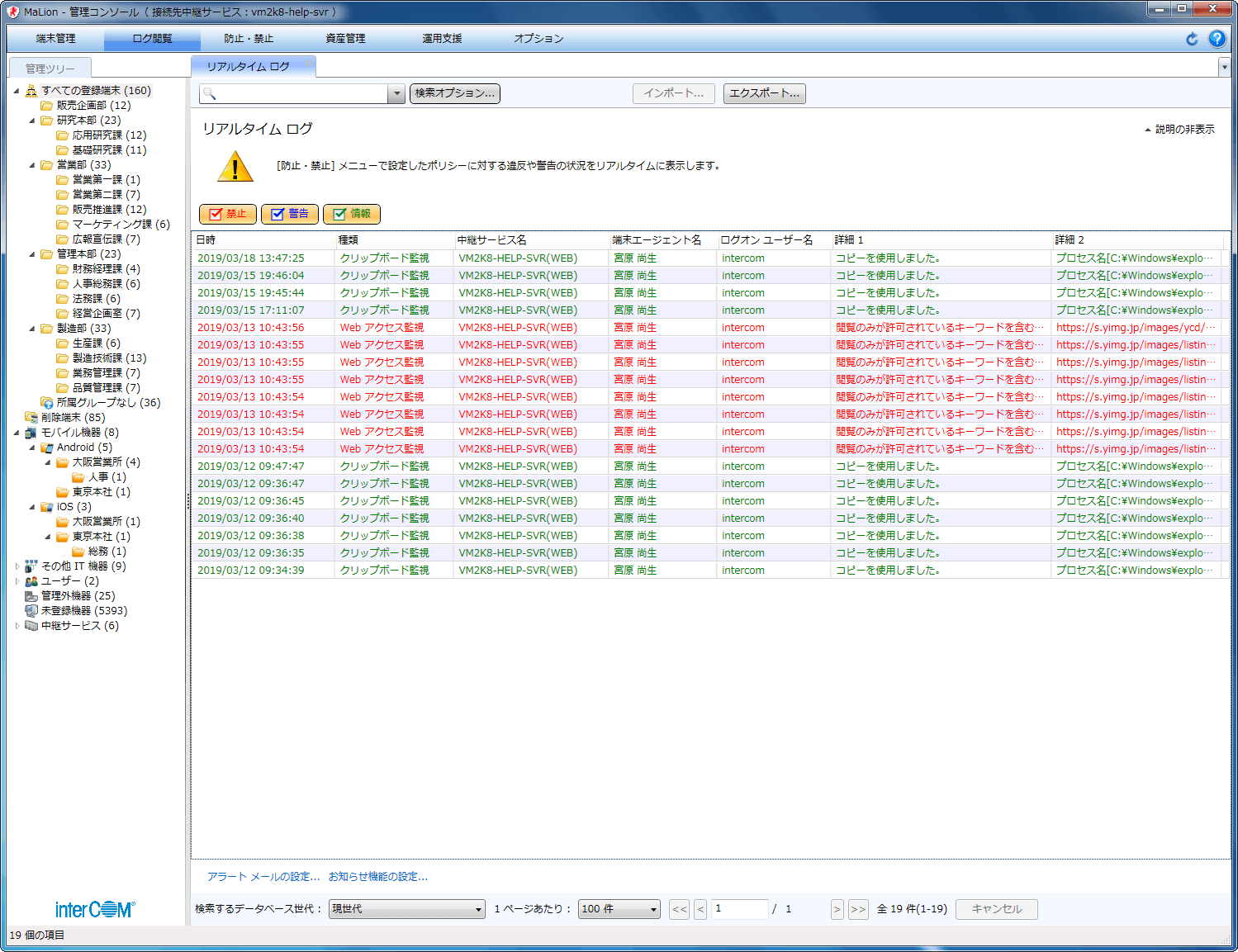 - 重要警告 管理者通知(リアルタイムログ)
