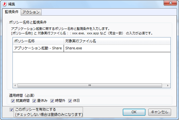 例えば、アプリケーションのexeファイル名を変更しても、新しいファイル名と元のファイル名の双方から起動監視が可能です。