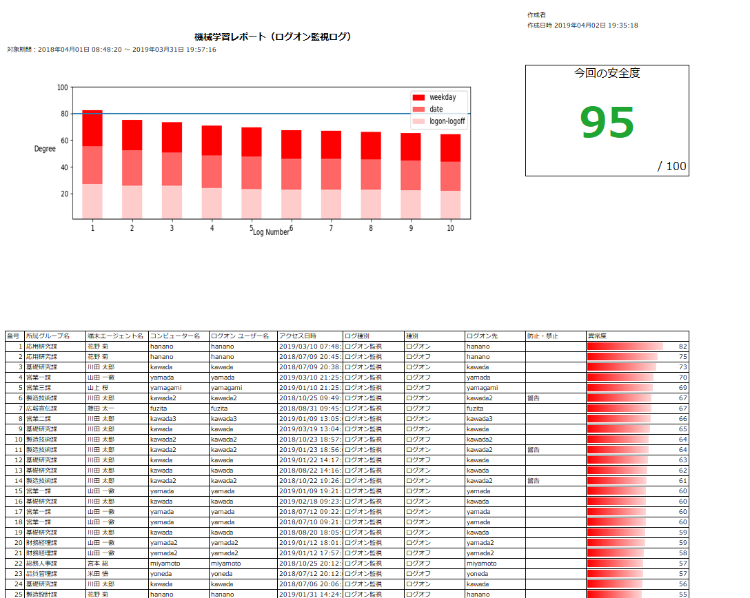 - PCの稼働状況や違反件数を集計してグラフ化したい