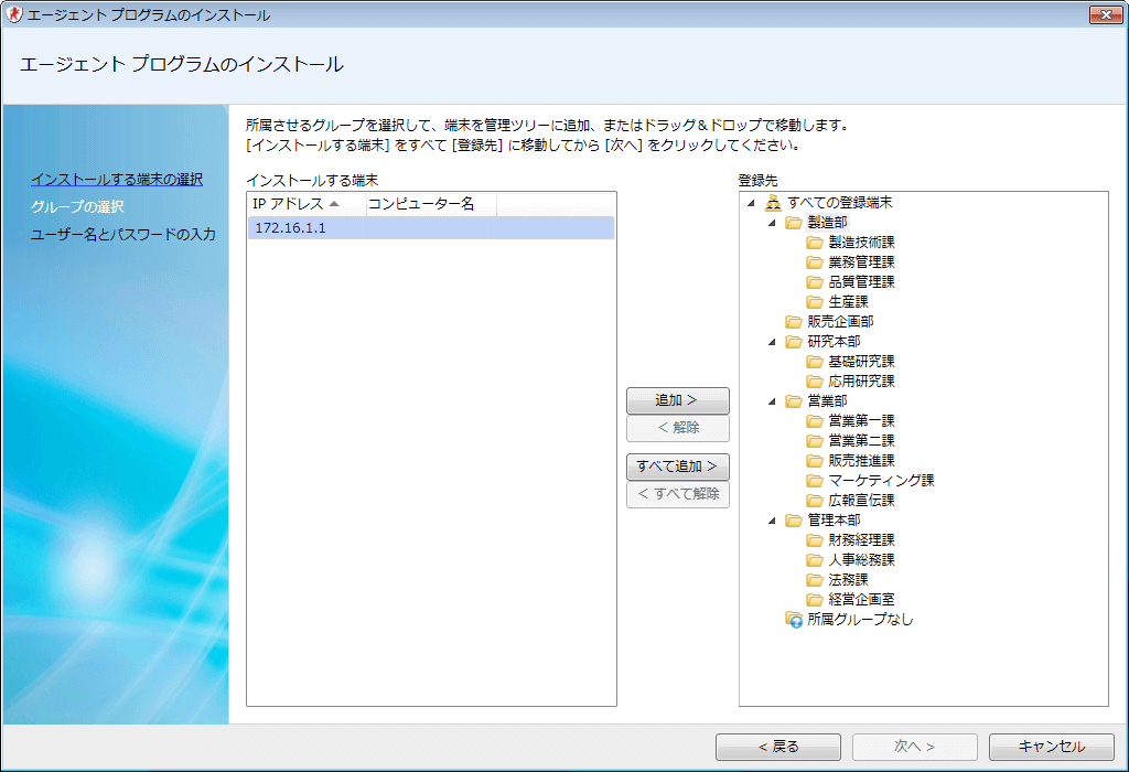 - 端末エージェント プッシュインストール