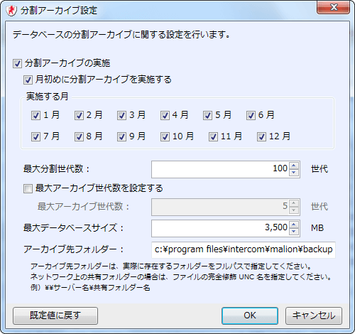 このようなSQL Server上の容量制限に対し、新たなデータベースファイルを作成して、以後操作ログの格納先として利用するためのデータベース分割機能です。