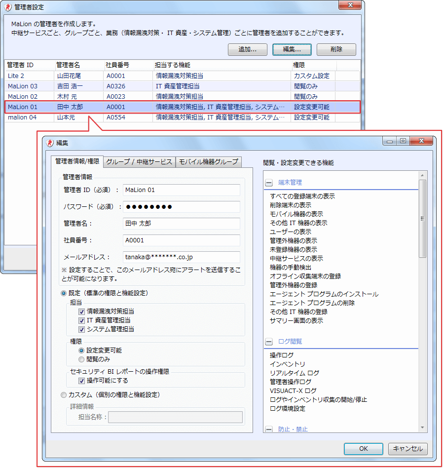 MaLionが記録するPC操作ログ(監査ログ)の活用に必要な全ての機能をパッケージ化。